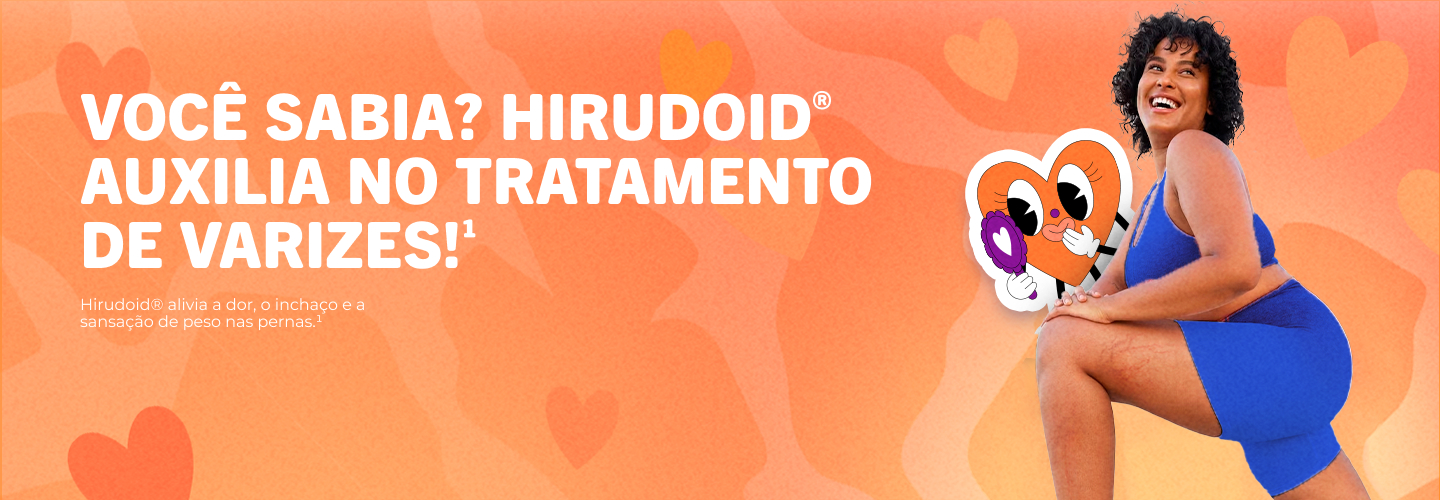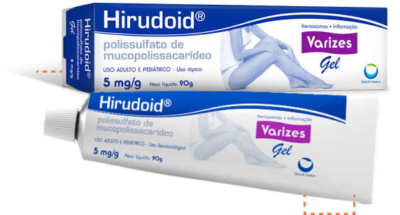 Hirudoid® (polissulfato de mucopolissacarídeo). MS – 1.0454.0013. Indicações – tratamento de manchas roxas após traumas, contusões, cirurgias, flebites e no local da injeção. Auxilia no tratamento de: varizes nas pernas; inflamação dos vasos linfáticos ou linfonodos; furúnculos; mastite. HIRUDOID® GEL – não pode ser usado em feridas abertas. SE PERSISTIREM OS SINTOMAS, O MÉDICO DEVERÁ SER CONSULTADO. MBR_08